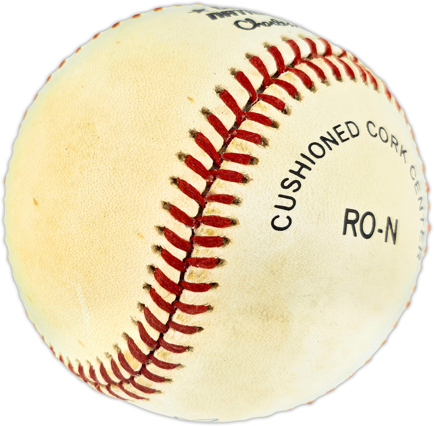 This is a rare opportunity to own an Official Feeney National League Baseball, hand signed by legendary Hall of Famer Mike Schmidt. Known for his remarkable career with the Philadelphia Phillies, Schmidt's name is synonymous with power hitting, exceptional defense, and leadership on and off the field. Perfect for serious collectors and Phillies fans alike, this autographed baseball is an iconic piece of MLB history. The ball shows natural toning, consistent with age, further adding to its authentic vintage appeal.