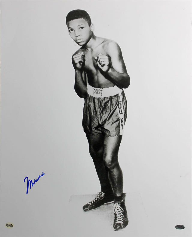 Own a piece of boxing history with this Authentic Signed 16x20 Black & White Photo of a young Muhammad Ali, personally autographed by the legendary champion. This stunning photograph captures Ali in his early years, offering a rare glimpse into the beginnings of one of the greatest athletes of all time.