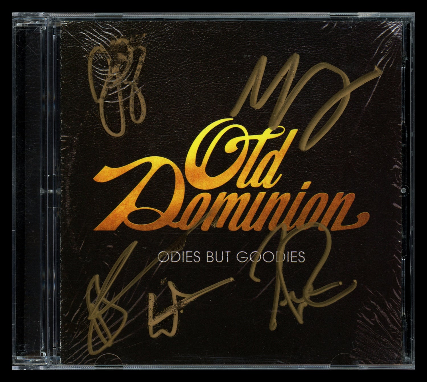 Own a unique piece of country music history with this "Odies But Goodies" CD Cover, hand-signed by all five members of Old Dominion: Matthew Ramsey, Trevor Rosen, Whit Sellers, Geoff Sprung, and Brad Tursi. Ideal for collectors and passionate fans, this autographed CD set celebrates the band's chart-topping success and unmistakable sound.