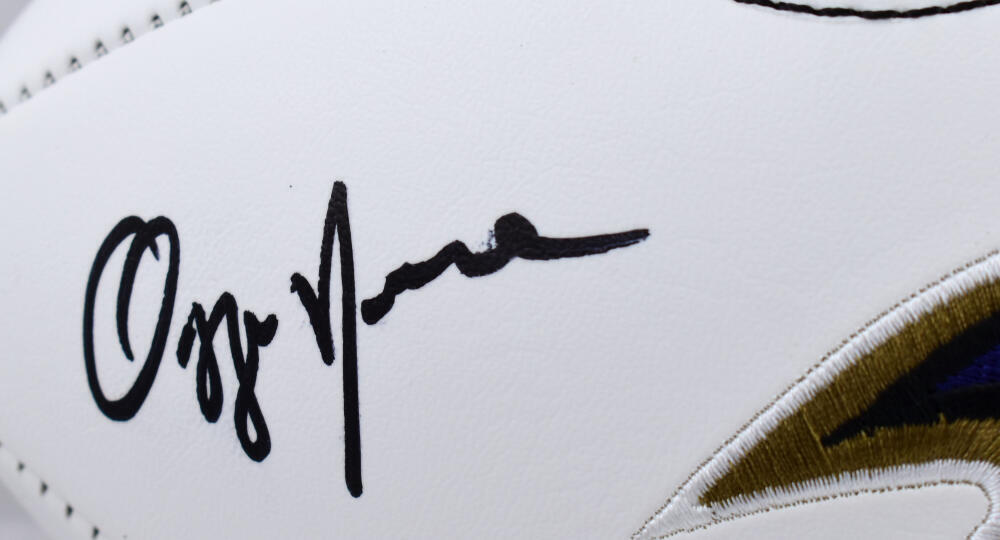 Own a piece of football history with this hand-signed Ozzie Newsome Baltimore Ravens logo football, inscribed with "SB Champs." A Hall of Fame tight end and a key figure in the Ravens organization, Newsome played a vital role in shaping the team's championship legacy. This autographed football is a must-have for die-hard Ravens fans and serious memorabilia collectors.