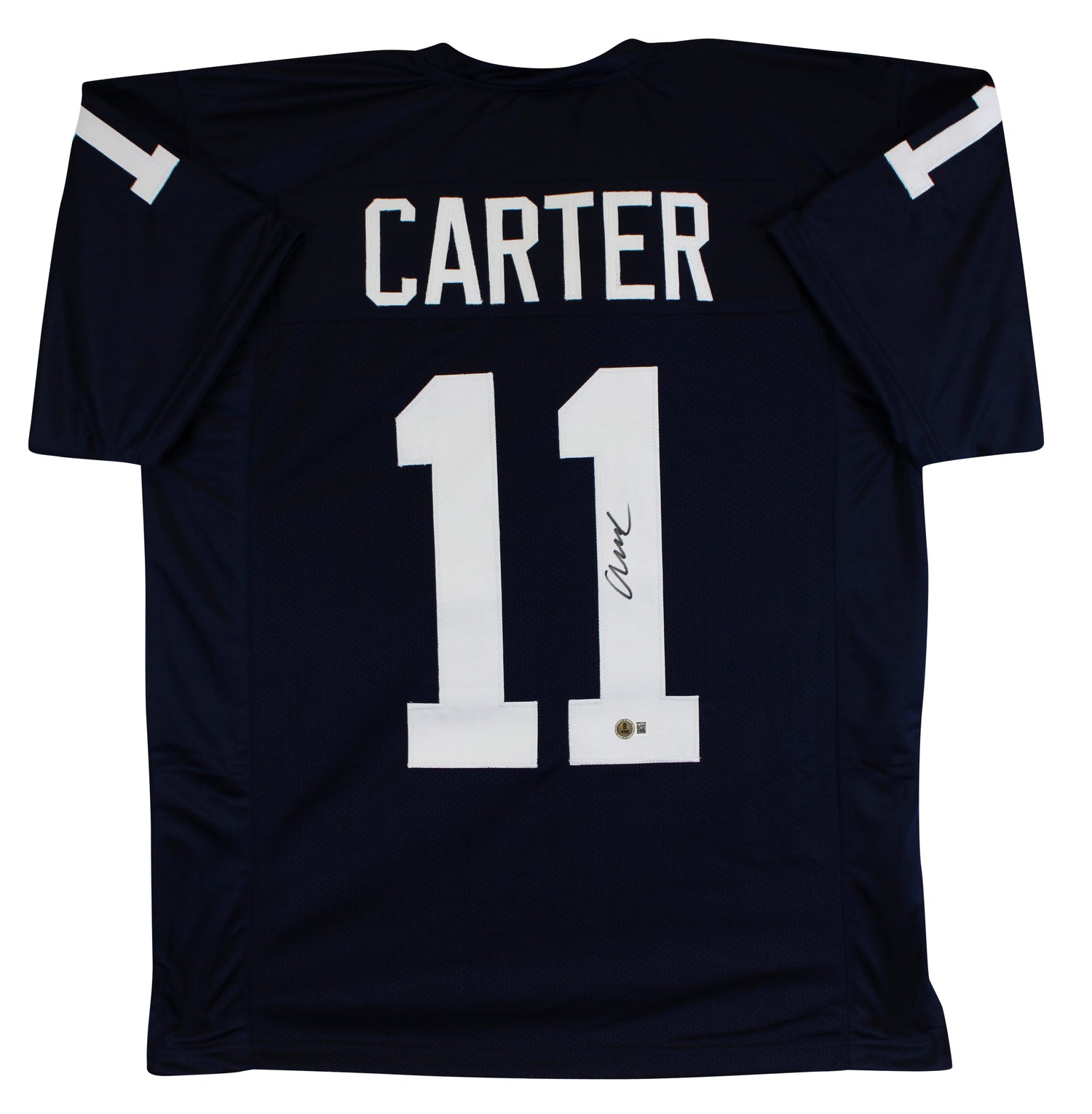 Own a piece of Penn State football history with this Autographed Navy Blue Pro Style Jersey personally signed by Abdul Carter, standout linebacker for the Penn State Nittany Lions. Whether you're a passionate Penn State fan, a follower of rising college football stars, or an avid memorabilia collector, this jersey is a must-have addition to your collection. Authenticated by Beckett Authentication Services (BAS) through their Witnessed Protection Program, a BAS representative was onsite to witness Abdul Carter’s autograph, guaranteeing its legitimacy.