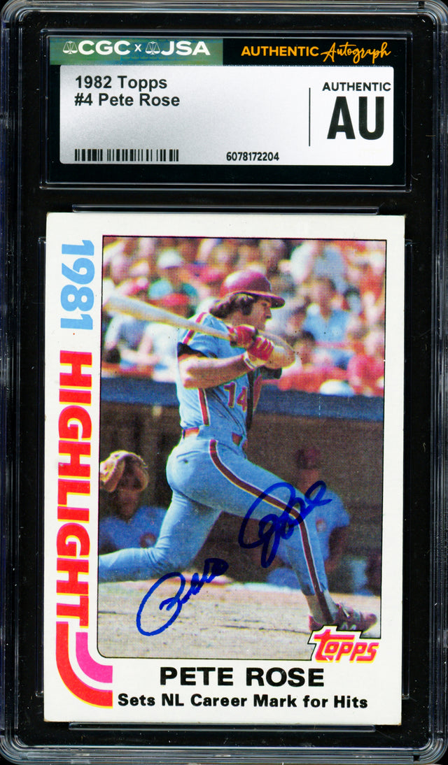 Pete Rose Autographed 1982 Topps Card #4 Philadelphia Phillies CGC x JSA #6078172204