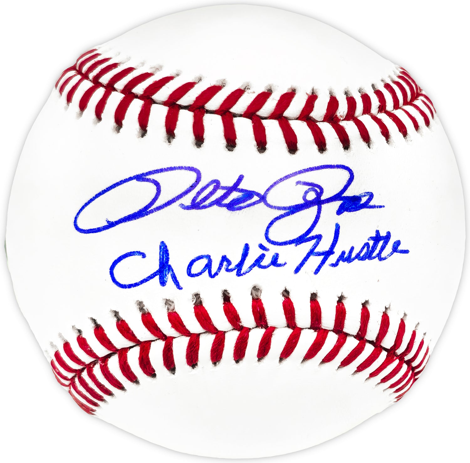 This Official MLB Baseball has been hand-signed by Pete Rose, one of baseball's most legendary figures. Adding to its uniqueness, this collectible includes the inscription "Charlie Hustle", the iconic nickname synonymous with Rose's relentless playing style.