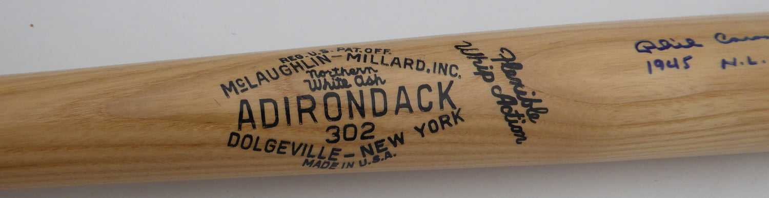 This is a rare and highly collectible Adirondack Bat personally hand-signed by Phil Cavaretta, featuring the special inscription "1945 NL MVP." A true piece of baseball history, this bat commemorates Cavaretta's incredible achievement as the 1945 National League MVP, a season in which he led the Chicago Cubs to the World Series. This authentic autographed bat has been certified by Beckett Authentication Services (BAS) and includes their tamper-proof QR Code sticker, allowing for easy verification at Beckett-authentication.com. Key Features: