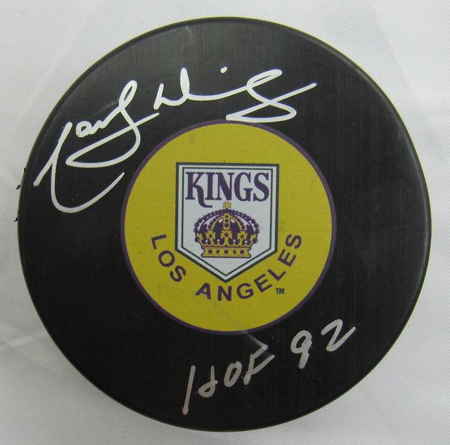 Celebrate hockey greatness with this Marcel Dionne Signed Auto Autograph Kings Logo Hockey Puck with inscription, authenticated by JSA (WB421404). A must-have piece for dedicated Los Angeles Kings fans and hockey memorabilia collectors alike, this puck captures the legacy of one of the NHL's most prolific scorers. Known for his elite playmaking and scoring ability, Marcel Dionne carved his name in hockey history as part of the legendary “Triple Crown Line” during the 1970s and ’80s.