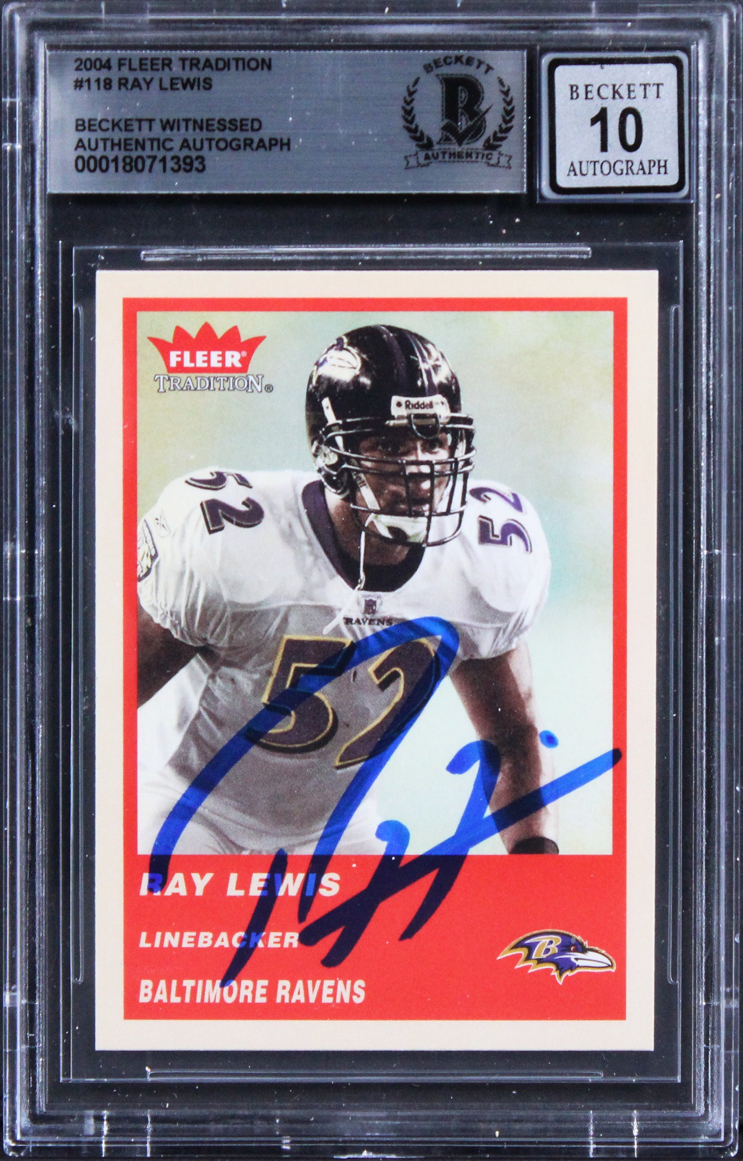 Ravens Ray Lewis Signed 2004 Fleer Tradition #118 Card Auto Mint 10! BAS Slabbed