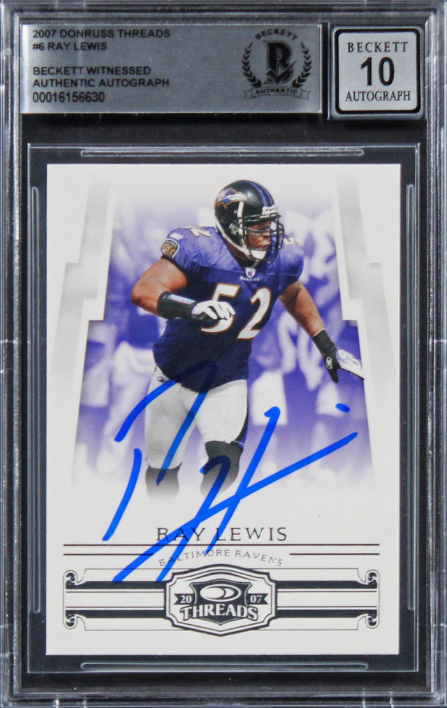 Ravens Ray Lewis Signed 2007 Donruss Threads #6 Card Auto 10! BAS Slabbed