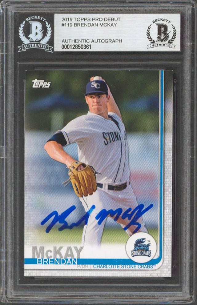 Rays Brendan McKay Authentic Signed 2019 Topps Pro Debut #119 RC BAS Slabbed is backordered and will ship as soon as it is back in stock.