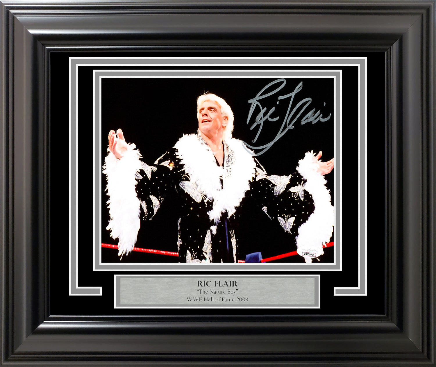 - Autographed by Ric Flair – Hand signed and witnessed for authenticity.