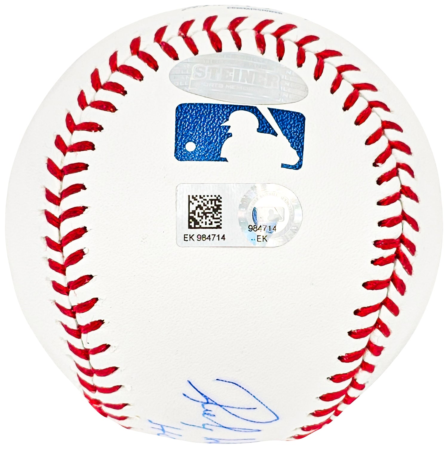 This Official MLB Baseball is a must-have collectible for fans of baseball history and one of the game's most electrifying players — Rickey Henderson, the all-time stolen base king. Personally hand-signed by Henderson and inscribed with "HOF 2009", this baseball marks his legendary induction into the National Baseball Hall of Fame. Known for his lightning speed and iconic swagger, Rickey Henderson changed the game forever, and this signed baseball is a tribute to his enduring legacy. Authenticated by both Major League Baseball and Steiner Sports, this piece is ideal for serious collectors and fans alike. Please note: there is a minor imperfection in the signature, as shown.