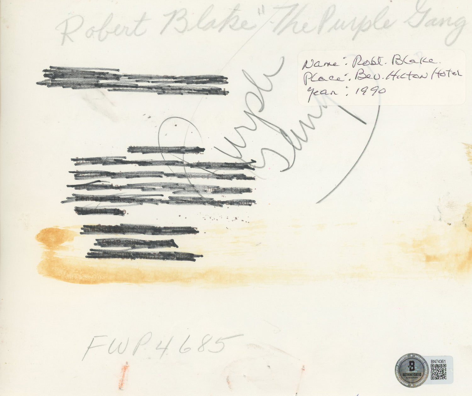- Personally signed by Robert Blake, star of The Purple Gang and Baretta.
