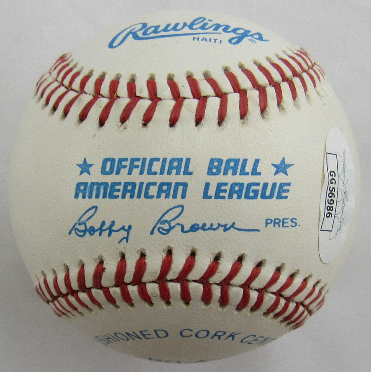 Add a true baseball legend to your collection with this George Brett Signed Auto Rawlings Baseball, authenticated by JSA (cert #GG56986). George Brett is one of the most iconic players in Major League Baseball history, spending his entire 21-season career with the Kansas City Royals and earning a place in the Baseball Hall of Fame in 1999. Known for his fierce competitiveness and incredible skill at the plate, Brett is the only MLB player to win batting titles in three different decades. This signed Rawlings baseball captures a piece of that incredible career and is a must-have for fans and collectors alike. Whether you're a life-long Royals supporter or a serious baseball memorabilia investor, this autographed ball is a timeless tribute to one of the game's greats.