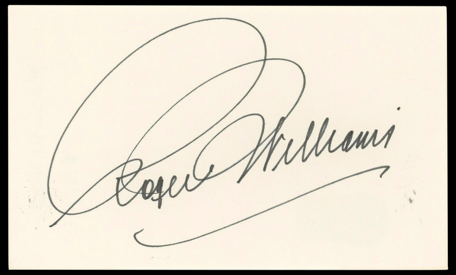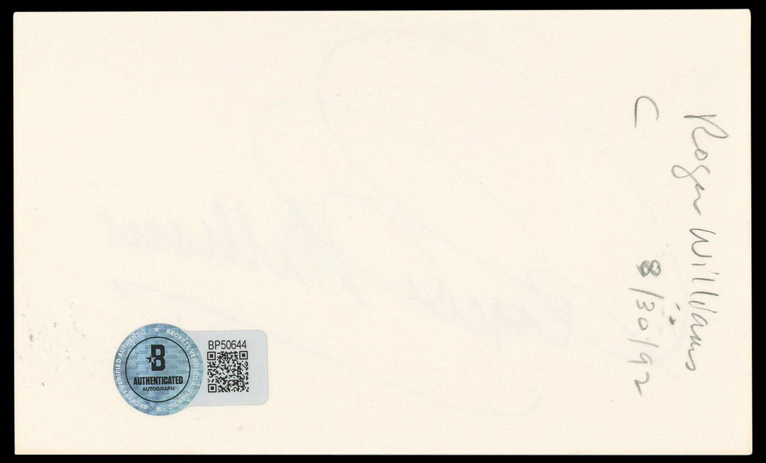 This signed index card is a timeless keepsake, ideal for framing or adding to your collection. Secure this authenticated Roger Williams autograph today!