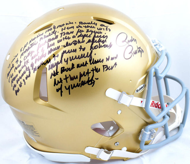 Rudy Ruettiger Signed Notre Dame Riddell F/S Speed Auth Helmet w/Story-Beckett W