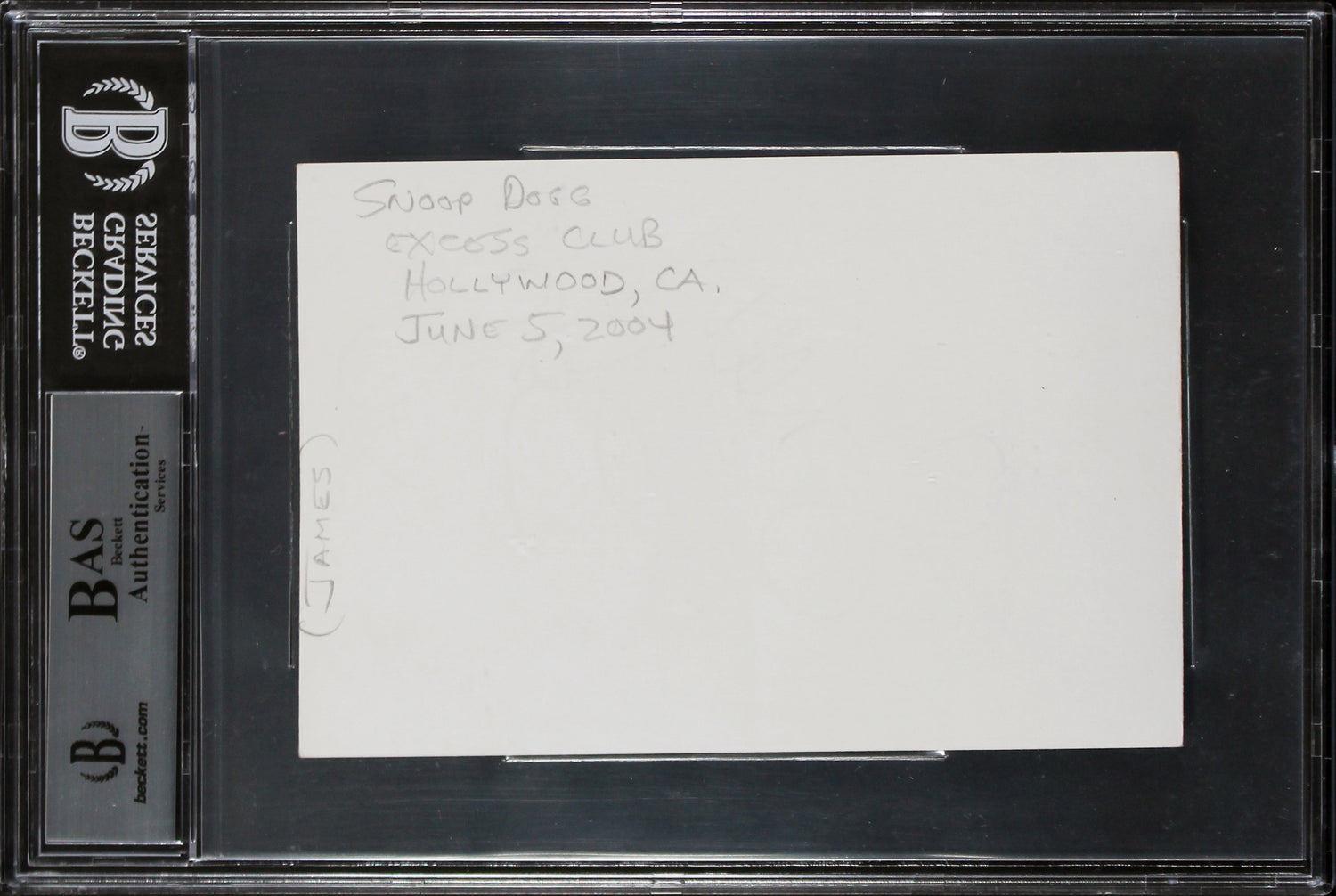 Snoop Dogg Rapper & Actor Authentic Signed 4x6 Index Card BAS Slabbed