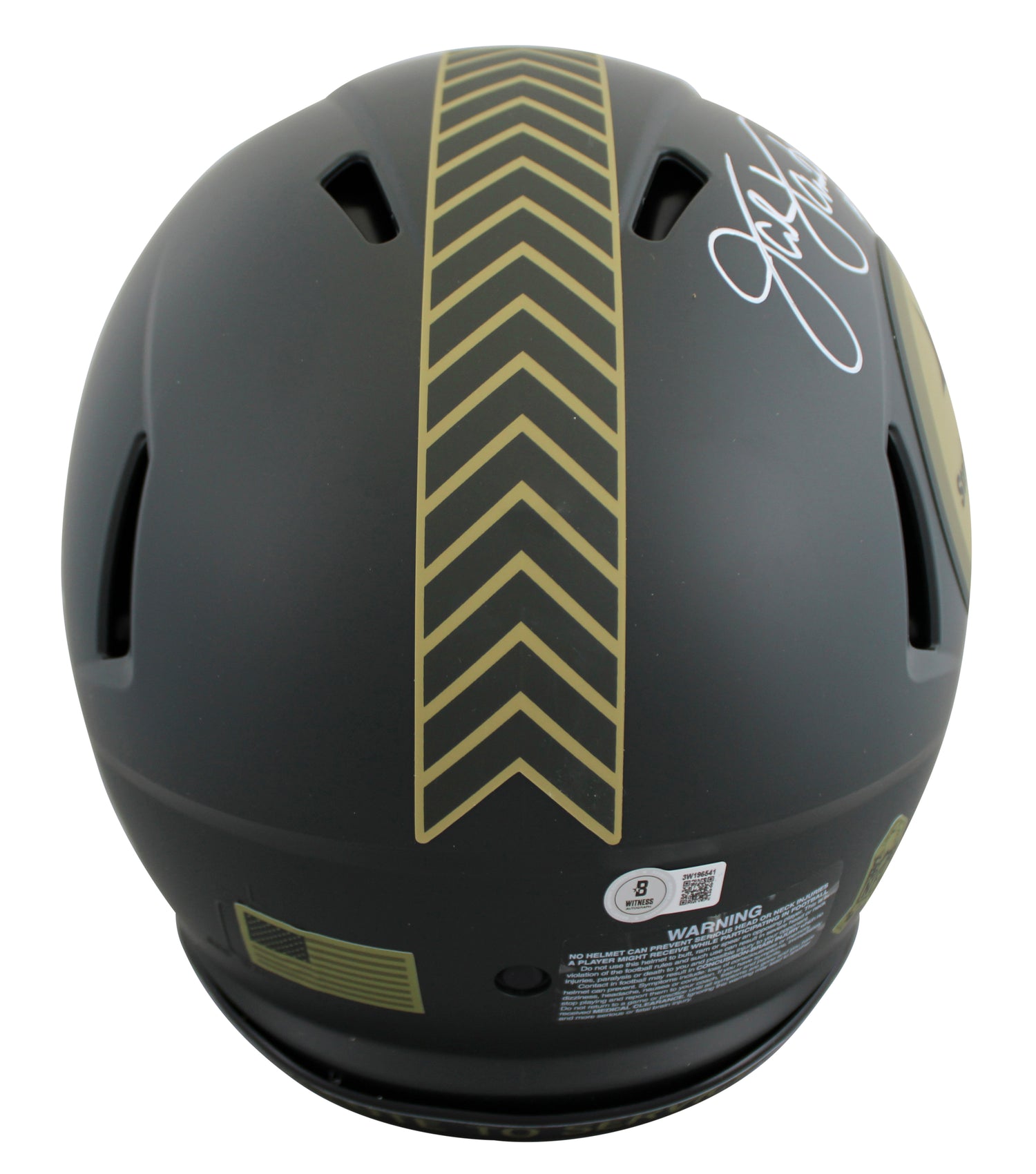 Honor the legacy of one of the Pittsburgh Steelers' all-time greats with this Autographed Alternate 2025 Salute to Service IV Riddell Authentic Full Size Speed Proline Helmet, personally signed by Pro Football Hall of Famer Jack Lambert. Known as the fierce leader of the Steel Curtain defense, Lambert helped power the Steelers to four Super Bowl victories in the 1970s and was enshrined in Canton in 1990, a moment commemorated with his "HOF 90" inscription on this helmet. Styled in the alternate 2025 Salute to Service IV design, this full-size Speed Proline helmet is a premium collectible for serious fans and collectors of Steelers memorabilia and NFL history.