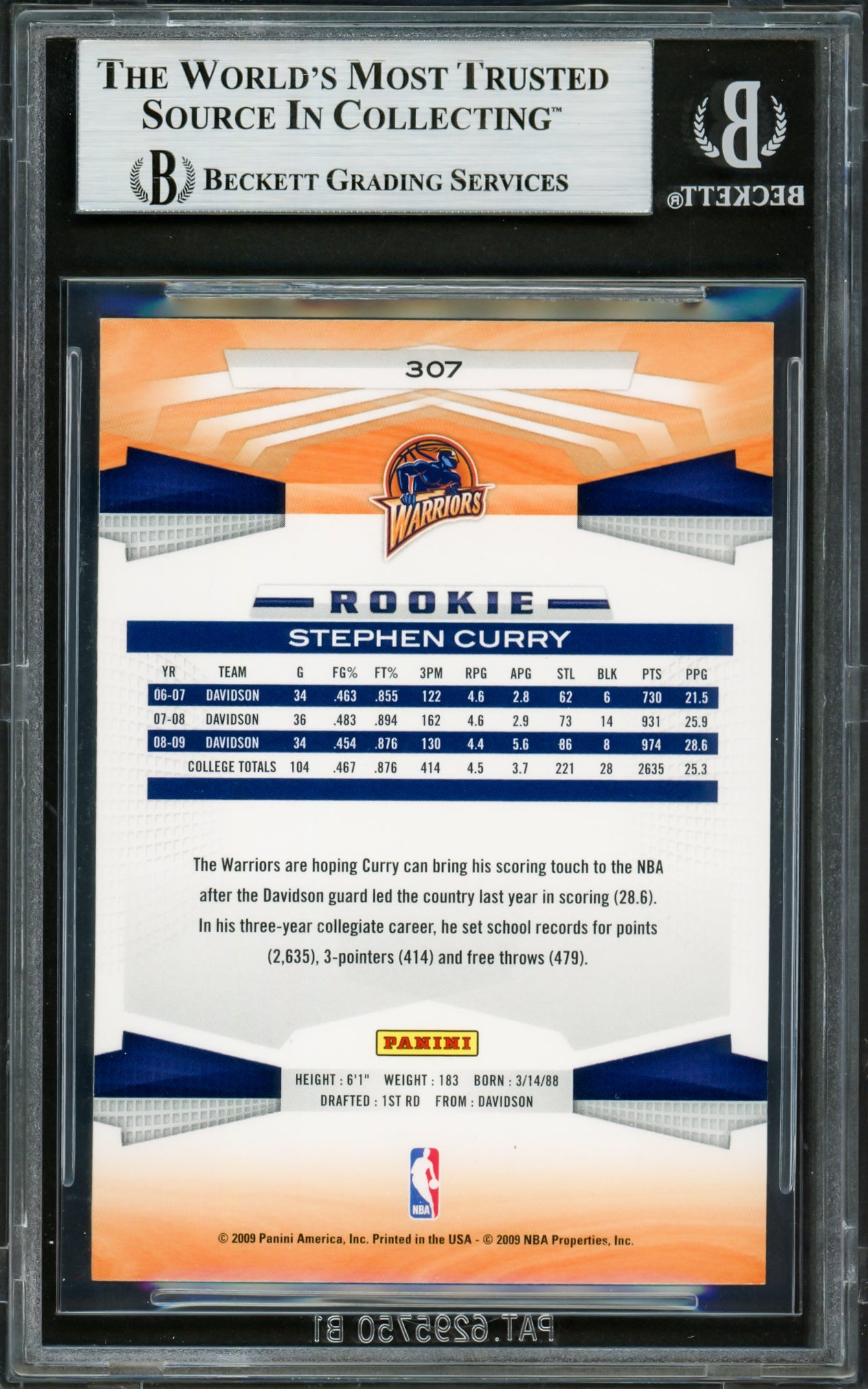 Stephen Curry Autographed 2009-10 Panini Rookie Card #307 Golden State Warriors Beckett BAS #16713299