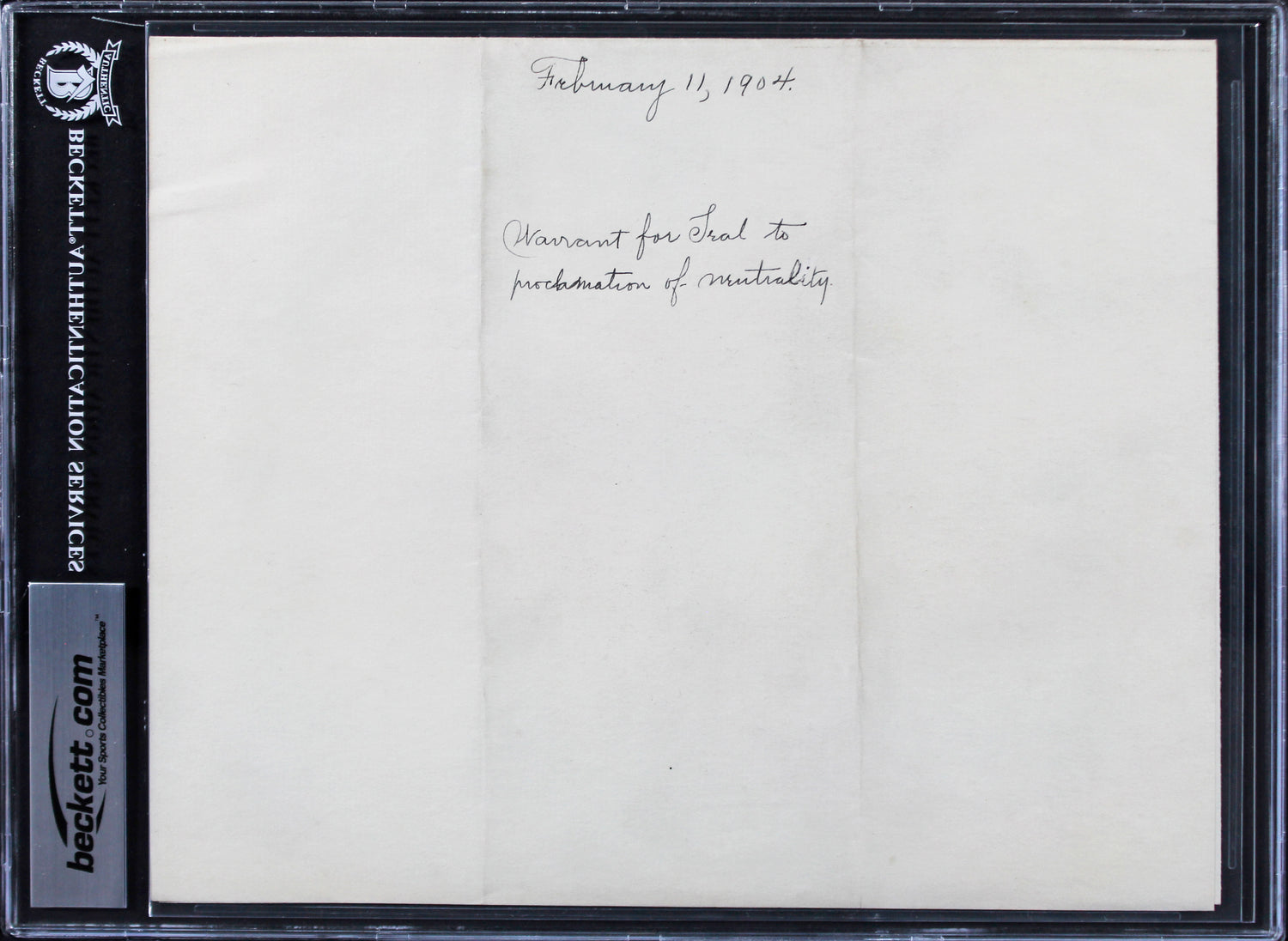 Own a rare and historically significant piece of American history with this February 11, 1904, Theodore Roosevelt Signed Letter on official White House letterhead. Authenticated and slabbed by Beckett Authentication Services, this 100% genuine document captures a pivotal moment in global diplomacy during the Russo-Japanese War (1904-1905).