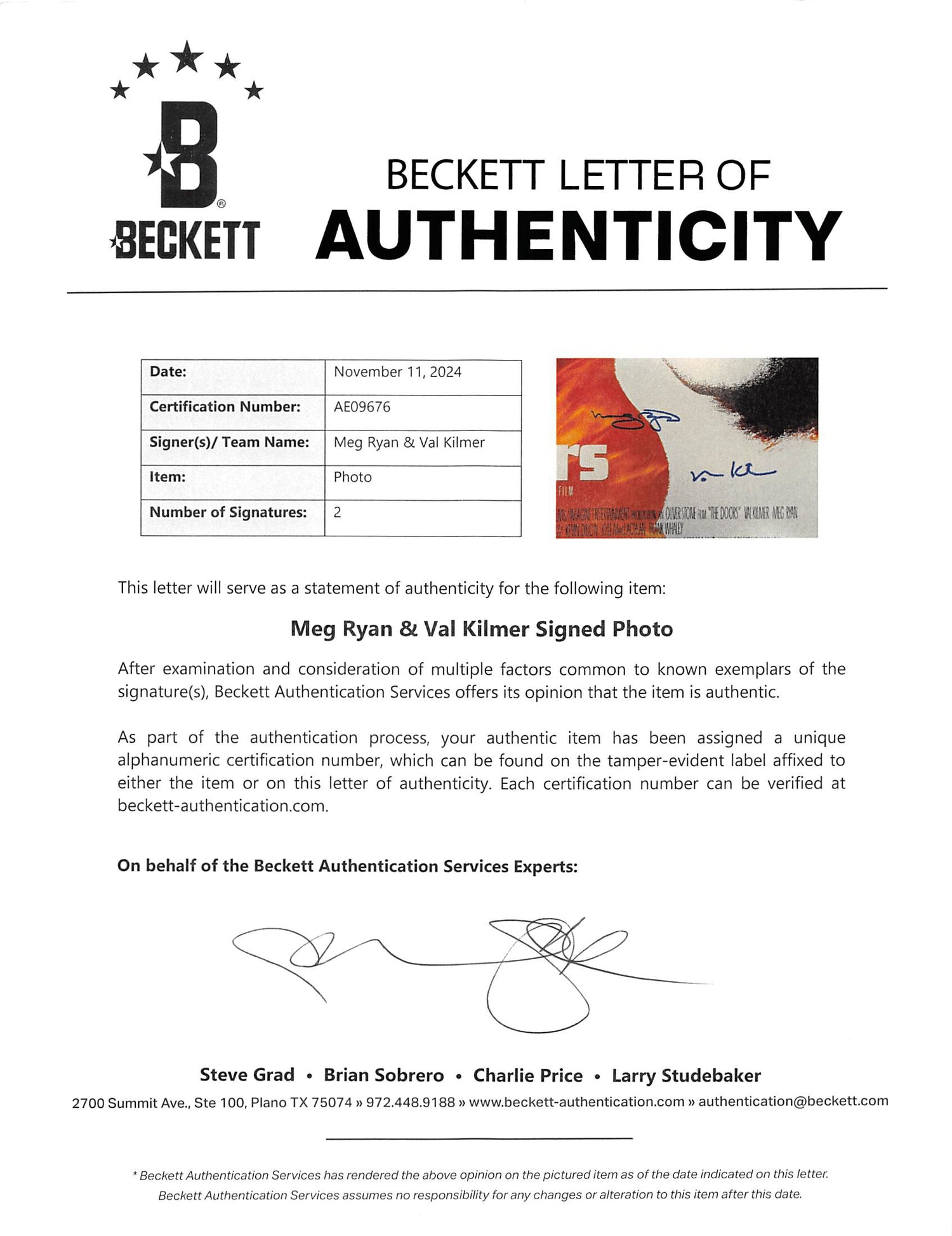 • Hand-signed by Val Kilmer & Meg Ryan, stars of The Doors