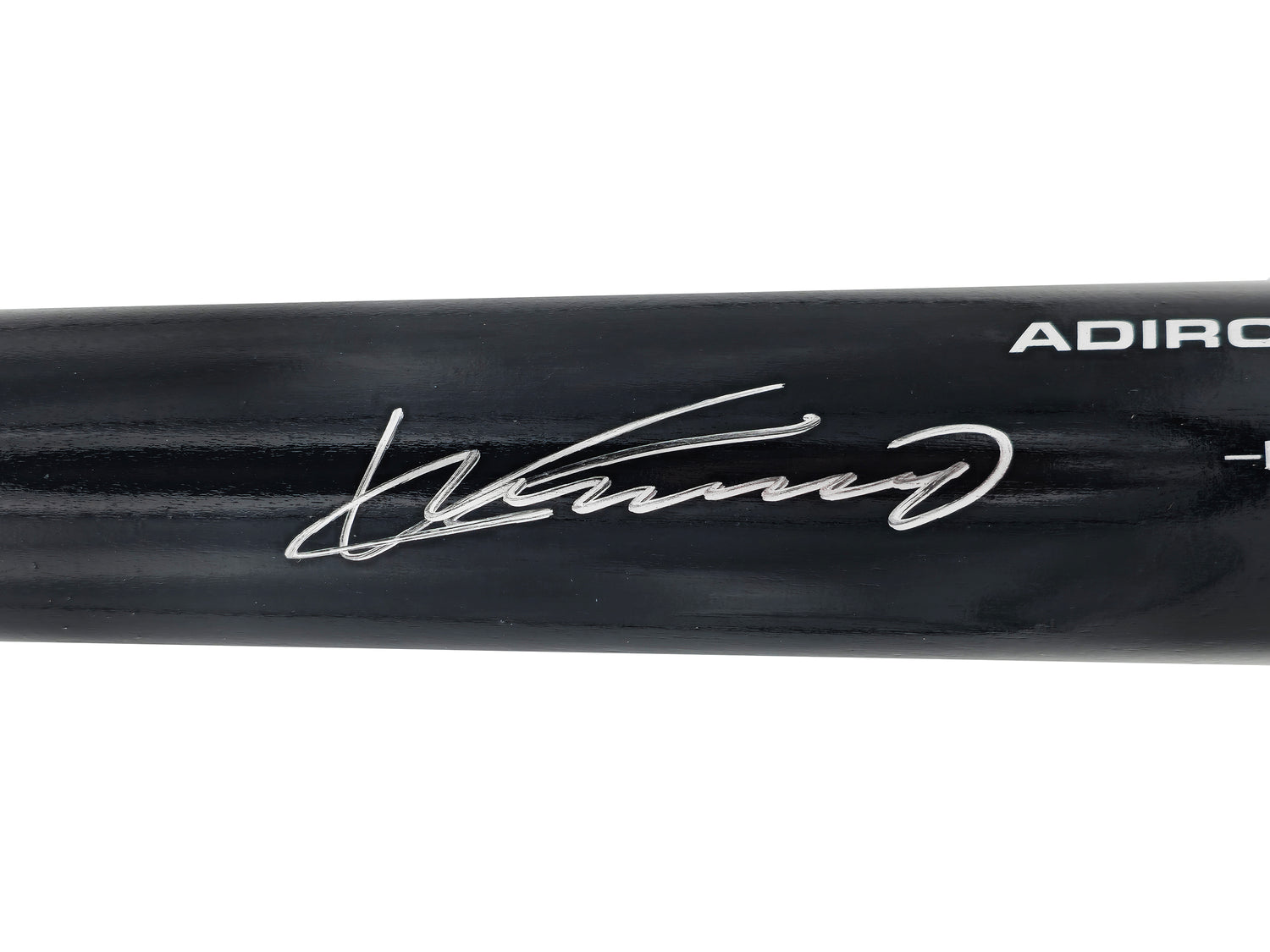 Own a piece of baseball history with this Black Rawlings Adirondack Pro Baseball Bat, hand-signed by Hall of Famer Vladimir Guerrero Sr. A legendary power hitter known for his aggressive batting style and incredible ability to hit almost any pitch, Guerrero Sr. left an indelible mark on the game.