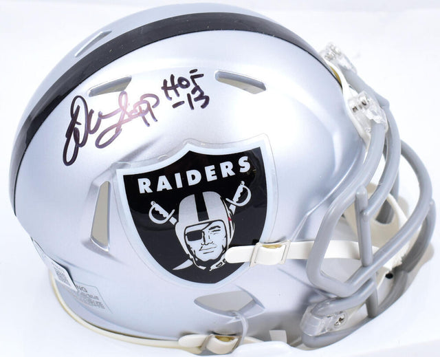 Own a piece of football history with this Warren Sapp autographed Oakland Raiders Riddell Speed mini helmet, inscribed with "HOF" to commemorate his Hall of Fame career. A dominant force on the defensive line, Sapp left a lasting legacy in the NFL, making this signed helmet a must-have for Raiders fans and memorabilia collectors.