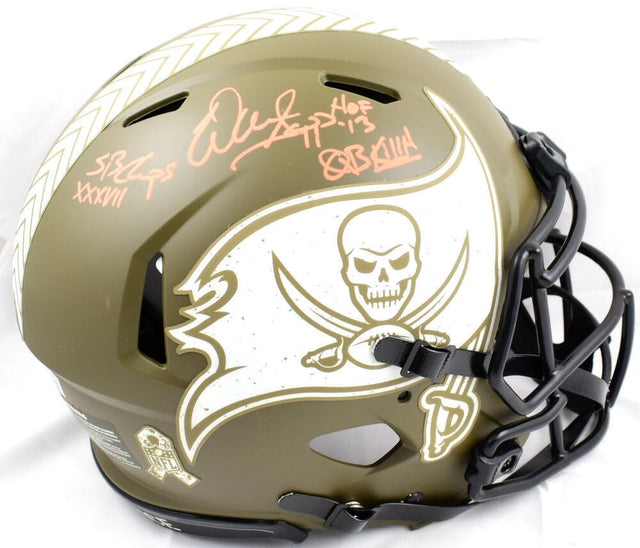 Warren Sapp Signed Bucs F/S Salute to Service Speed Auth Helmet w/3 ins-BeckettW