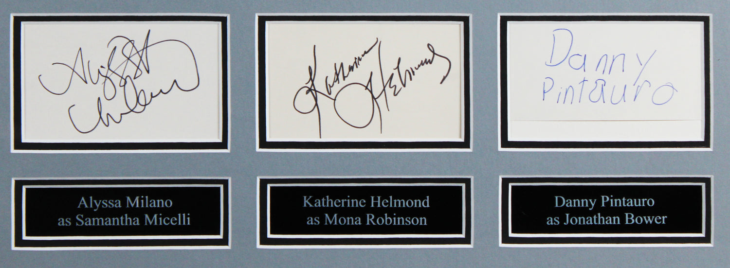 Celebrate a beloved 80s and 90s sitcom with this stunning Autographed Framed Display signed by the full main cast of “Who’s the Boss?” – Alyssa Milano, Tony Danza, Judith Light, Danny Pintauro, and Katherine Helmond. A must-have centerpiece for any TV memorabilia or pop culture collection, this display brings together five iconic signatures in one collectible.